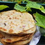 Сковороду разогреть на сильном огне, смазать сливочным маслом, положить лепёшку и, не убавляя огонь, подержать 20 сек. без крышки...