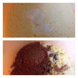 Выложить сметану. Взбить секунд 15-20. Добавить какао и растопленное масло, взбить еще пару секунд.