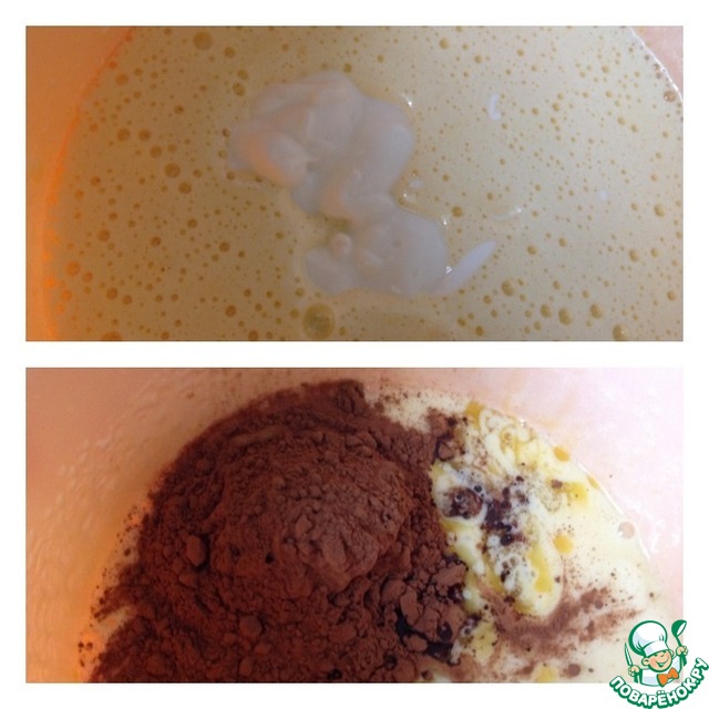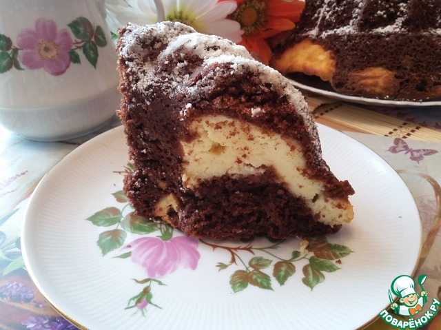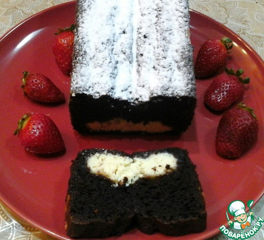 Рецепт «Шоколадный кекс с творожной прослойкой»: