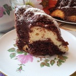 Творожную массу выложить поверх шоколадного теста и разровнять ложкой. Отправить кекс в духовку при 160-170 гр на 50-60 минут. Ничего перемешивать и "будоражить" слои не надо. в процессе выпечки, творог сам сделает красивое действо и проникнет в шоколадное тесто, оставляя красивый рисунок. Готовый кекс остудить и присыпать сахарной пудрой.