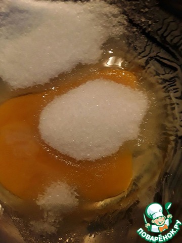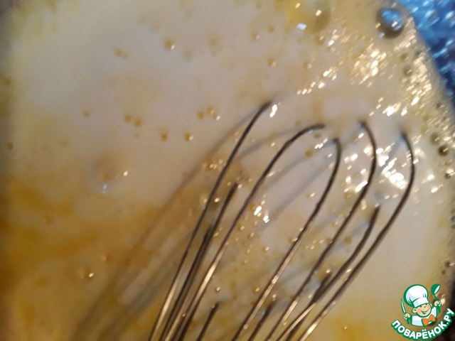 Добавляем к яично- сахарной смеси кефир комнатной температуры или кефир можно слегка подогреть и все перемешиваем.