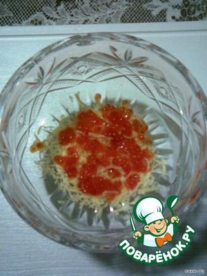 Этот салат родился на прошлый Новый год совершенно спонтанно. Я хотела назвать этот салат "Королевской мимозой", но муж сказал, что для этого в нем маловато икры...
