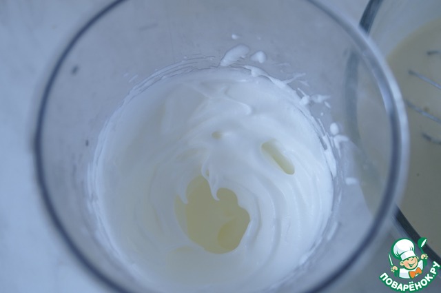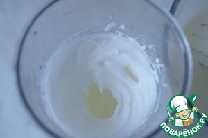 Добавить взбитые белки небольшими порциями в подготовленное тесто, перемешать до однородного состояния.