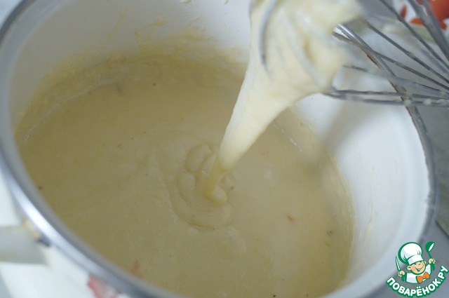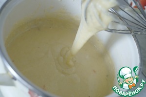 Влить тонкой струйкой кипяток, постоянно помешивая. -