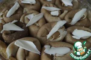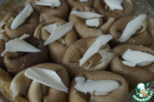Плотно выкладываем "улитки" в смазанную сливочным маслом форму. На каждый блинчик кладем небольшой кусочек масла. Выпекаем в духовке, разогретой до 180*С, около 20-25 минут. -