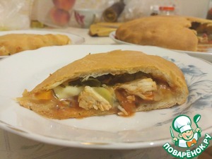 Это обалденная закрытая пицц, приготовленная на вкусном (но очень простом в приготовлении!!) дрожжевом тесте. Пицца выходит тонкой, сочной, ароматной и не оставит никого равнодушным! Также из такого теста можно готовить любые булочки и пироги с начинкой (без начинки не желательно, т. к. оно само по себе нейтрального вкуса).