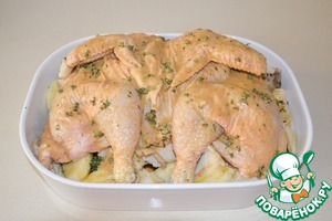 Рецепт «Курица, запеченная с картофелем и грибами»:
