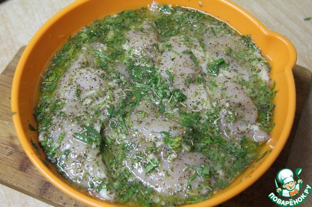 Погрузить в этот маринад грудки и оставить их, хотя бы, на 30 минут. Лучше на ночь или даже сутки (как в моем случае)