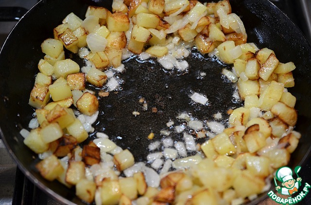 Картофель нарезать некрупным кубиком (примерно как в суп).