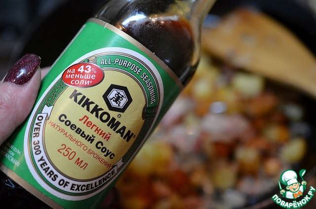 Добавьте соевый соус. Я использую лёгкий соевый соус ТМ Kikkomаn.