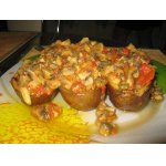 В центр выложите нарезанный кубиками бекон (можно использовать любое копченое мясо или ветчину).