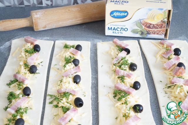 Рецепт «Слоеный пирог с сыром и маслинами»: