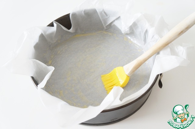 Форму застелить и смазать остатками сливочного масла. Духовку нагреть до 200 градусов.