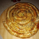Очень нравится такой пирог: делается несложно, а результат приятный. И вкусно, и интересно смотрится на столе. Начинка из растаявшего сыра и сливочного масла делает пирог сочным.