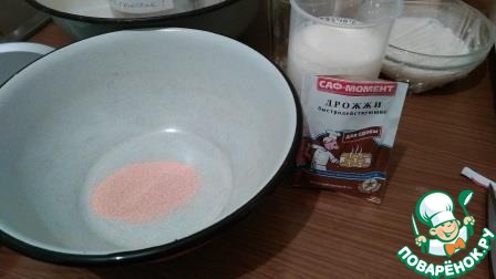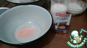 Молоко немного подогреть. В отдельной миске соединить дрожжи и сахар. Я использовала "Саф Момент" для сдобы, т. к. кто-то из девочек писал, что они пахнут ванилью. И действительно, такой потрясающий запах!!! К дрожжам добавить 250 мл теплого молока. Поместить емкость в теплое место на 10-15 минут, чтобы немного подошла опара.