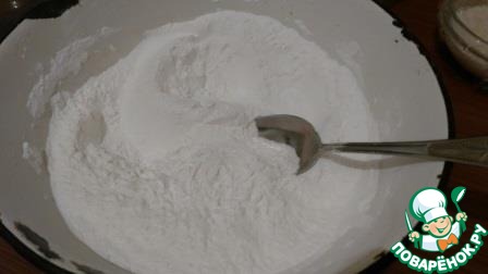Тем временем займемся мукой. Рисовую муку, крахмал и тапиоку отмерить и просеять через сито в большую емкость, в которой потом мы будем замешивать тесто. Сразу оговорюсь, что можно тапиоку заменить на кукурузный крахмал, разница будет не большая, хотя из опыта работы с тапиокой и кукурузным крахмалом, я поняла, что с тапиокой дрожжевое тесто на хлеб, например, получается пышнее и легче. Добавить соль и все хорошо перемешать.