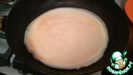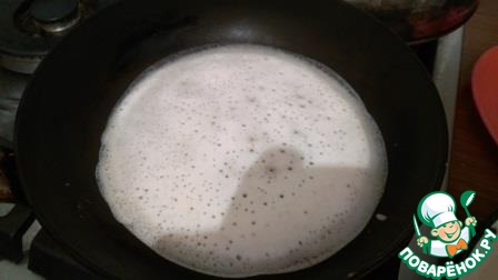 Что меня поразило, что у меня не было первого блина комом! Вот так выглядит блин на сковородке - первая сторона