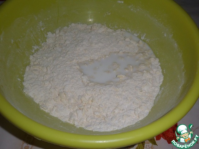 • Перетираем ингредиенты до состояния крошки. Добавляем холодное молоко.