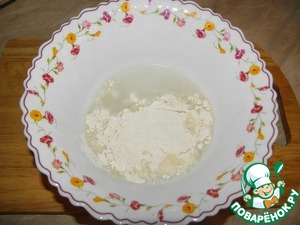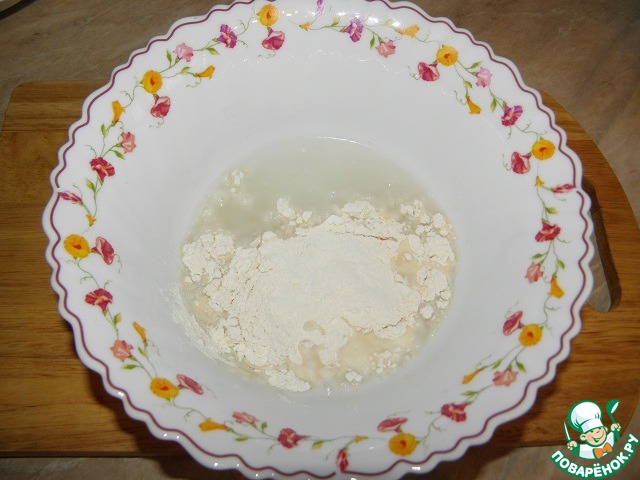 Для кляра:В тарелку налить горячую воду, добавить муку и соль
