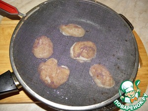 Обжариваем с двух сторон, переворачиваем при помощи двух вилок, или лопатки. Огонь должен быть средний, чтобы курочка прожарилась (не пересушить)