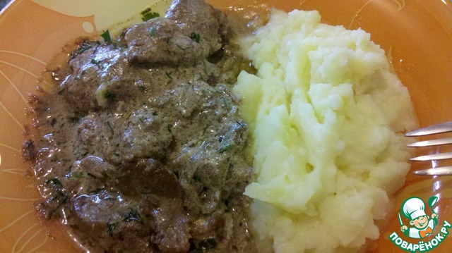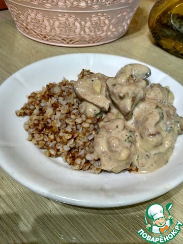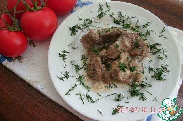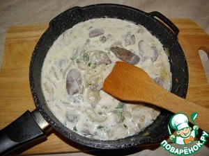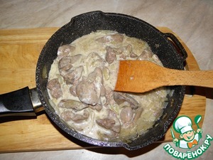 Рецепт «Куриная печень в сметанно-сырном соусе»: