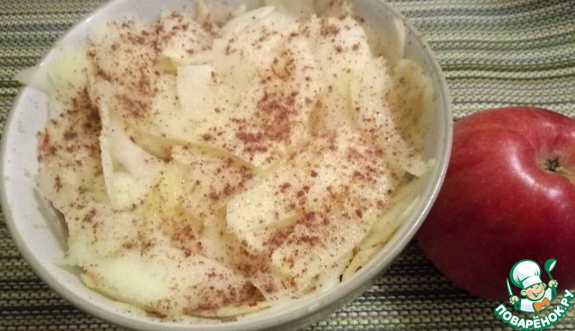 Чистим яблоки и овощерезкой нарезаем их тонкими слайсами, сбрызгиваем лимонным соком, корицей. Если яблоки твердые и кисловатые, советую немного протушить их с ложкой сахара.