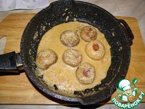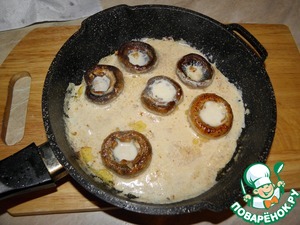 • Растопить на сковороде сливочное масло, выложить шляпки грибов.