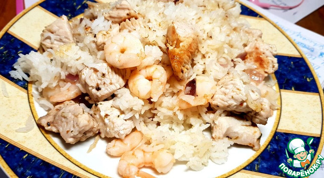 Рецепт «Рис с курицей и креветками в сливочном соусе»: