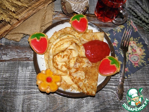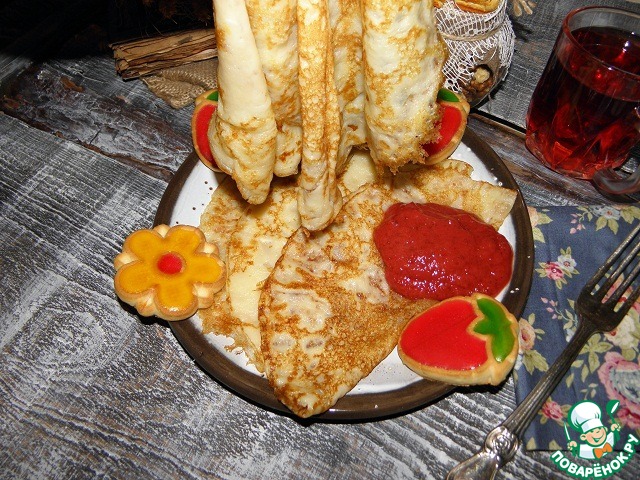 Удивить блинами сложно! Это просто невозможно! Но мы смелые, друзья! Без новинок нам нельзя! Быстро так получится! И не будем мучиться! Тут рецепт, уже в котором, первый блин не будет комом! Тесто ведь крахмальное! Просто идеальное! Соус тоже будет класс! Очень вкусно все у нас! От души рецепт вручаю! С Масленицей поздравляю!!!