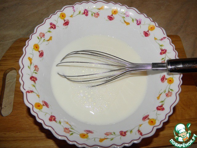 Хорошо взбиваем эту смесь венчиком, добавляем соль, сахар по вкусу