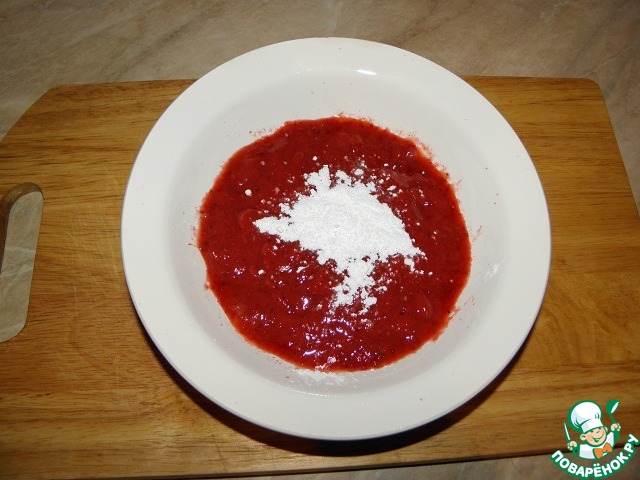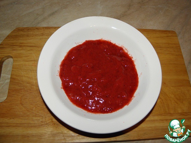 Для соуса: Взять клубнику (если будет замороженная, то нужно оттаять и избавиться от лишней жидкости) В клубнику добавить 1 ст. л меда