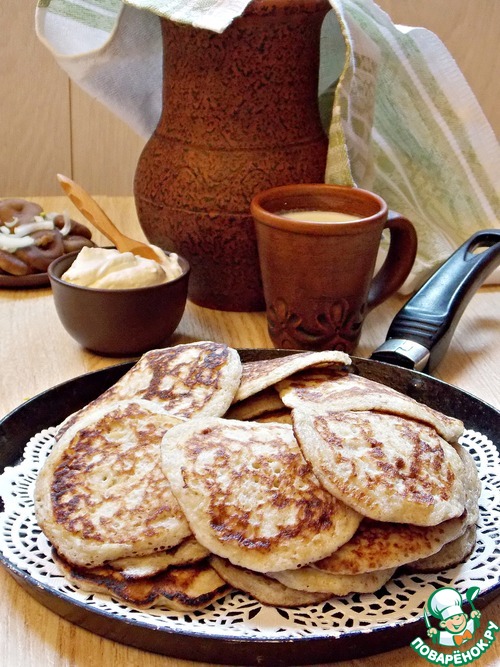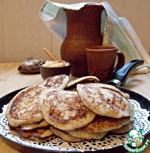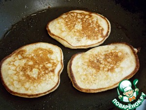 Затем брать тесто ложкой и обжарить маленькие блинчики на горячей сковороде, каждый раз смазывая ее растительным маслом.