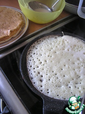 Готовые блинчики накрыть полотенцем и держать теплыми.