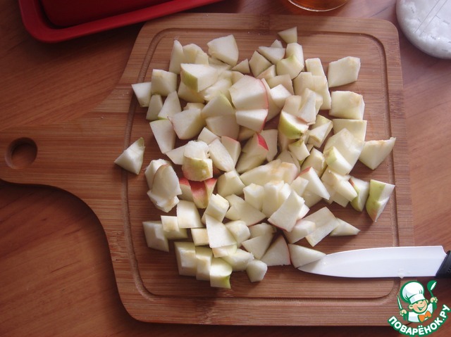 Яблоки режем мелким кубиком.