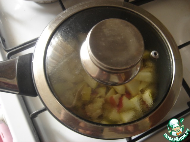 Снимаем крышку, прибавляем огонь и делаем до полного выкипания жидкости. Яблоки карамелизуются.