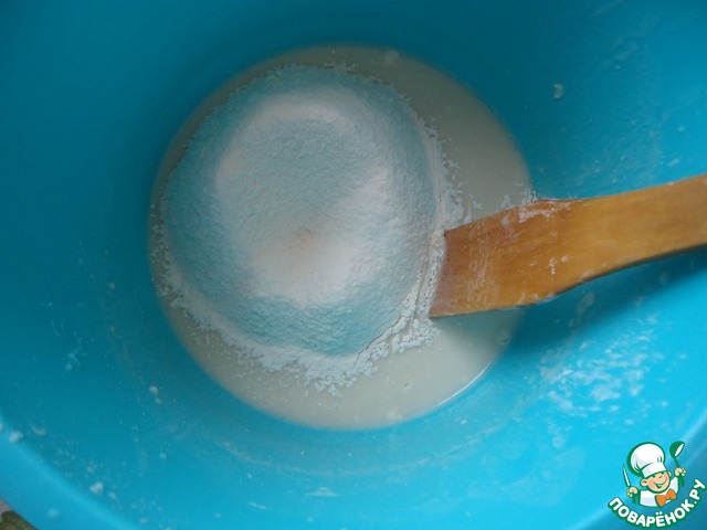Для приготовления дрожжевых блинов сначала необходимо дрожжи развести в теплой воде.