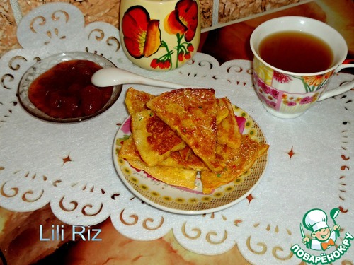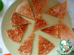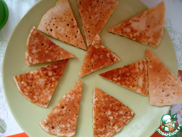 А теперь хочу вернутся к основной теме моего рецепта-как поступить с блинами, оставшимися со вчерашнего дня. Для этого необходимо блины нарезать на сектора или кусочки, какие вам нравятся.