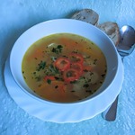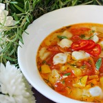 Переложить овощи в кипящий бульон. Варить 5 мин. В конце добавить мелко резанный укроп, соль и перец по вкусу.
