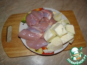 - Филе куриное (сделать фарш из куриного филе, у меня филе бедра) — 700 г