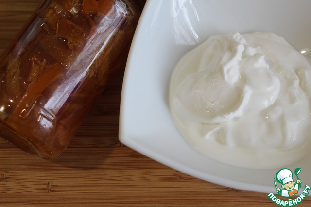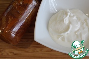 Сметану смешиваем с апельсиновым джемом по вкусу.
