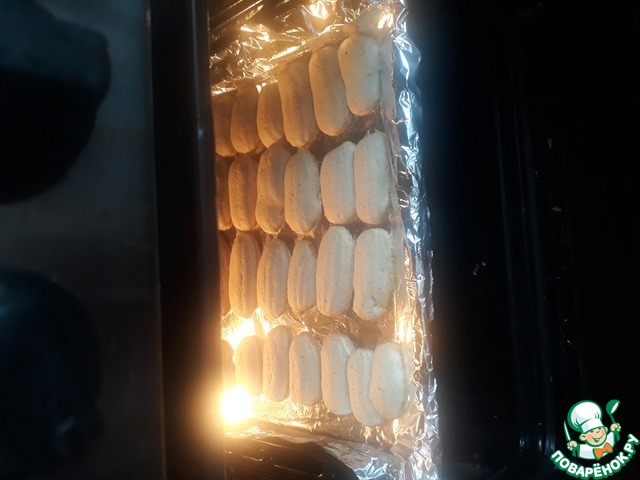 С помощью кондитерского мешка (шприца) сформировать полосочки, длиной 5 -7 см. -