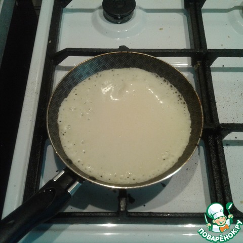 Блинчики выпекать на сковороде, смазанной растительным маслом, до румяной корочки.