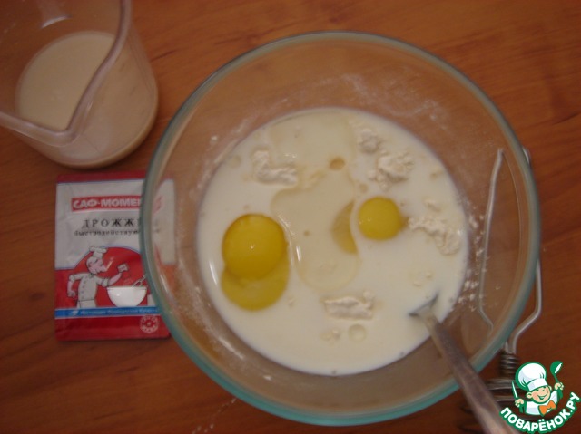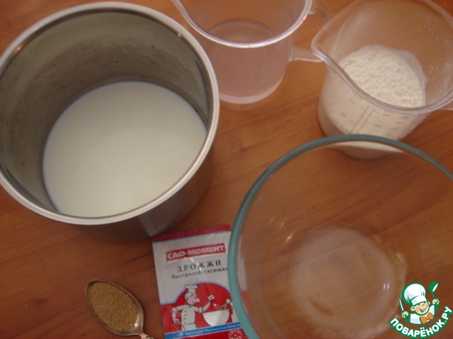 • Берём тёплую воду и растворяем в ней дрожжи. Молоко тоже немного подогреваем.