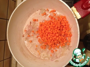 • Режем морковь кубиками и отправляем в сковороду