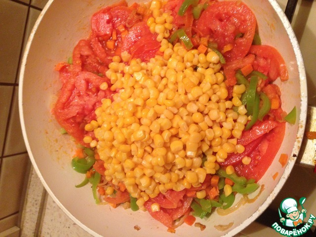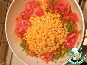 • Ко всем этим овощам добавляем кукурузу, предварительно слив с нее воду