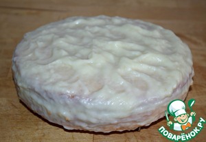 Каждую промазать кремом, сложить одну на другую.