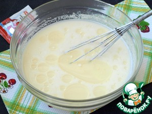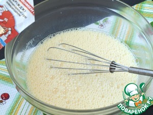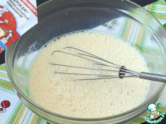 В дрожжевую смесь добавить яйца и хорошо взбить венчиком.