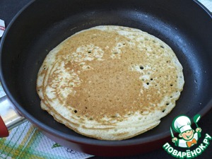 Как только поверхность блина затянулась, можно переворачивать и выпекать с другой стороны.