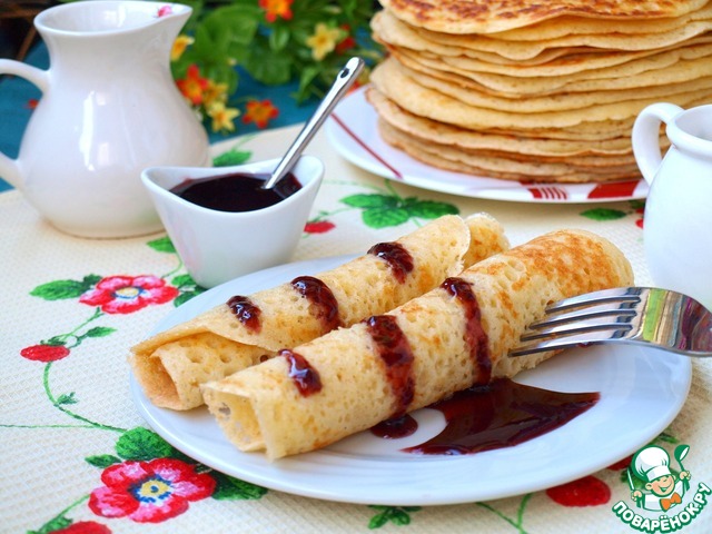Блинчики можно подавать с чем угодно: хоть со сметаной, хоть с джемом или вареньем, будет одинаково вкусно!