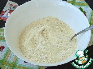 В отдельной миске смешать просеянную муку с манной крупой, ванилином и солью.